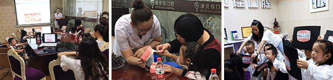 本次活动共有8组家庭参加,工作人员带领家长和小朋友们来到了三楼,由康贝佳口腔医生向大家介绍了儿童护齿的要点,并指导小朋友们如何正确刷牙。
