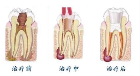 根管治疗是以药物,以及器械的操作来将根管内的残渣,以及细菌尽可能地清除消毒干净。