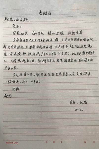 千言万语的感谢最后也只能汇成一句祝福的话:真心祝愿康贝佳口腔的全体医护人员身体健康,全家幸福!