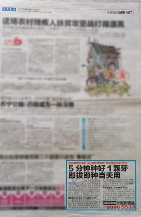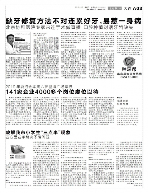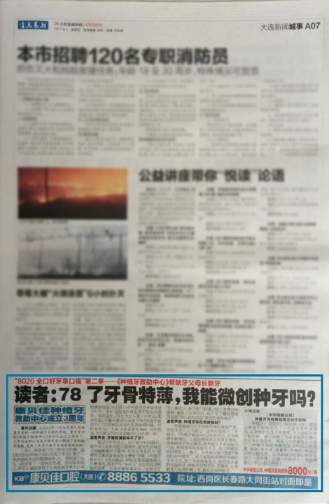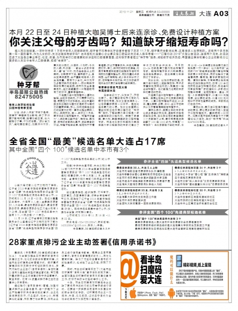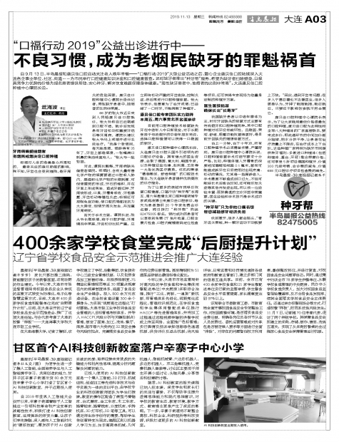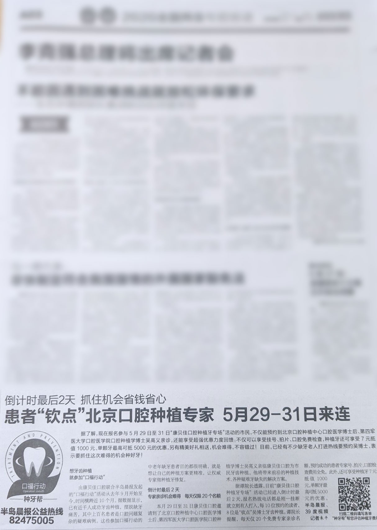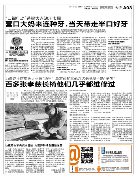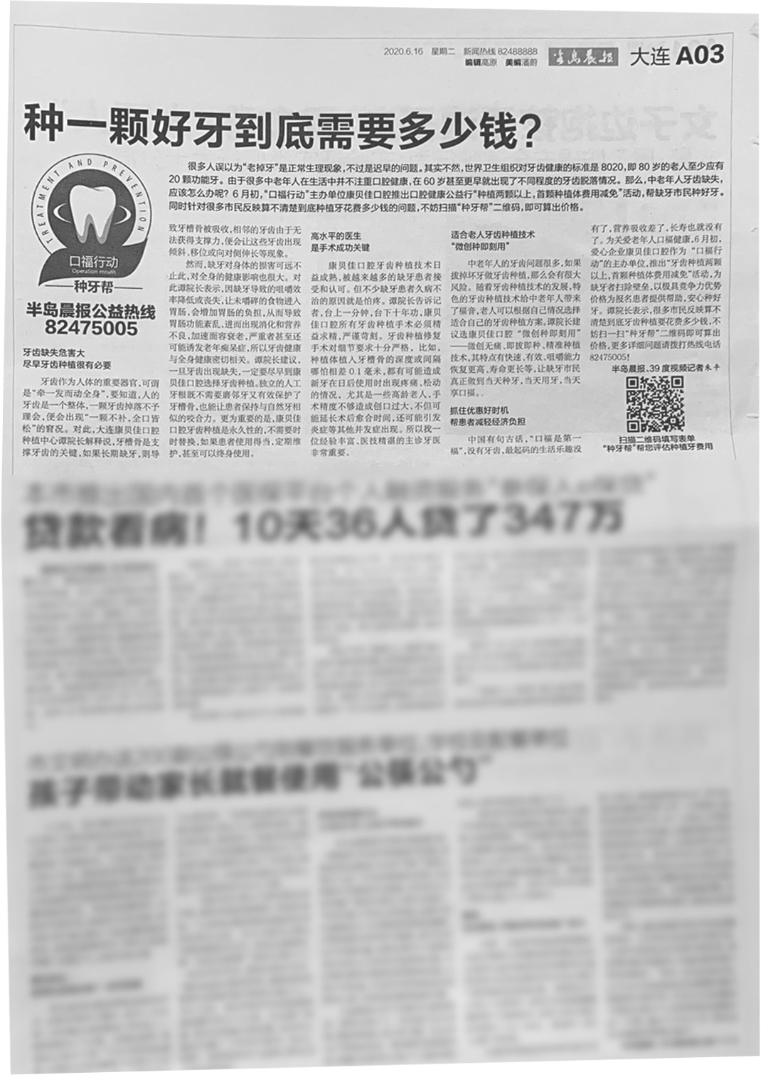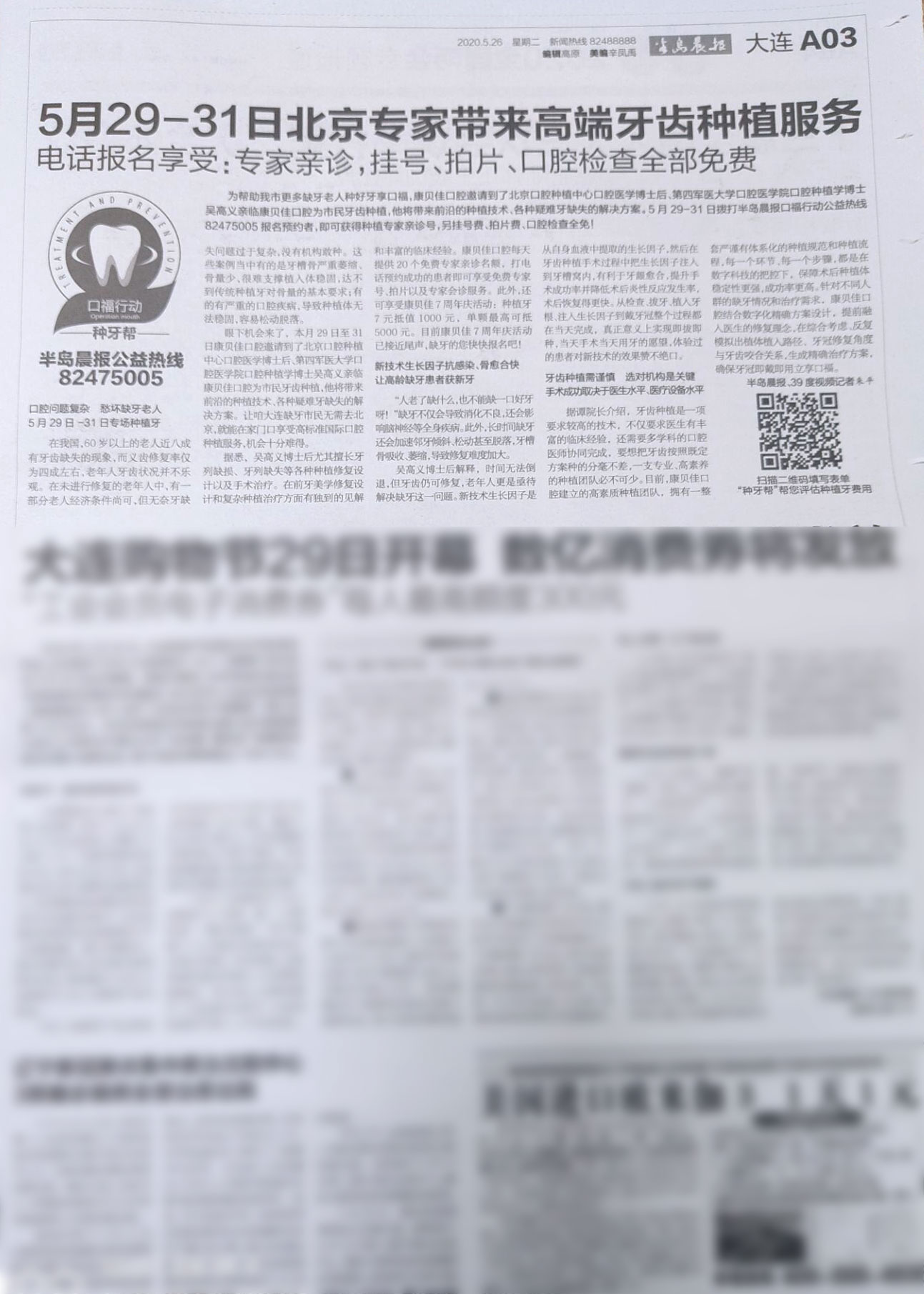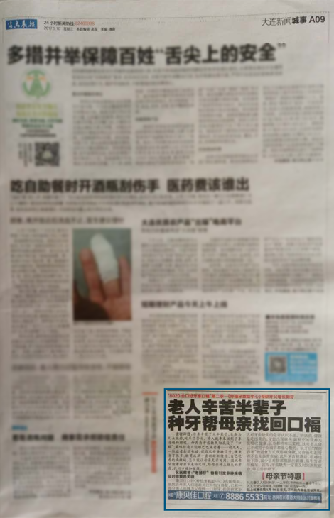 中国有句俗语:牙疼不是病。老一辈人整日为生计奔波,小病扛着大病推着,牙疼这种小问题根本不会去看医生,坏一两颗牙根本不放在心上。有数据显示,在全国35-40岁的人群中,平均失牙数达到2-2.5颗;65-74岁老人平均失牙数9.86颗;80岁以后,近三分之一的老人嘴里没有一颗牙。由半岛晨报联合康贝佳口腔共同发起的“口福行动2019”,就是要呼吁大众关注口腔健康,关心儿童口腔,让其无忧成长;关怀成年人口腔,帮其预防疾病;关爱缺牙老人,提高其生活质量。半岛晨报作为宣传媒介,康贝佳口腔作为唯一技术支持单位,集社会关爱与责任为一体,都在尽自己的微薄力量,推动口腔健康传递公益理念,尽力实现世界卫生组织提倡的“8020”计划。