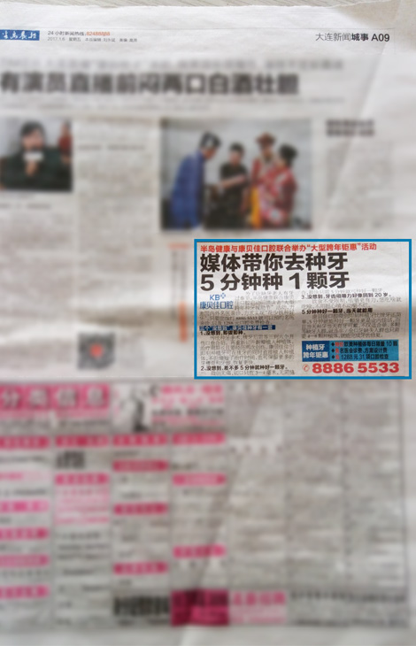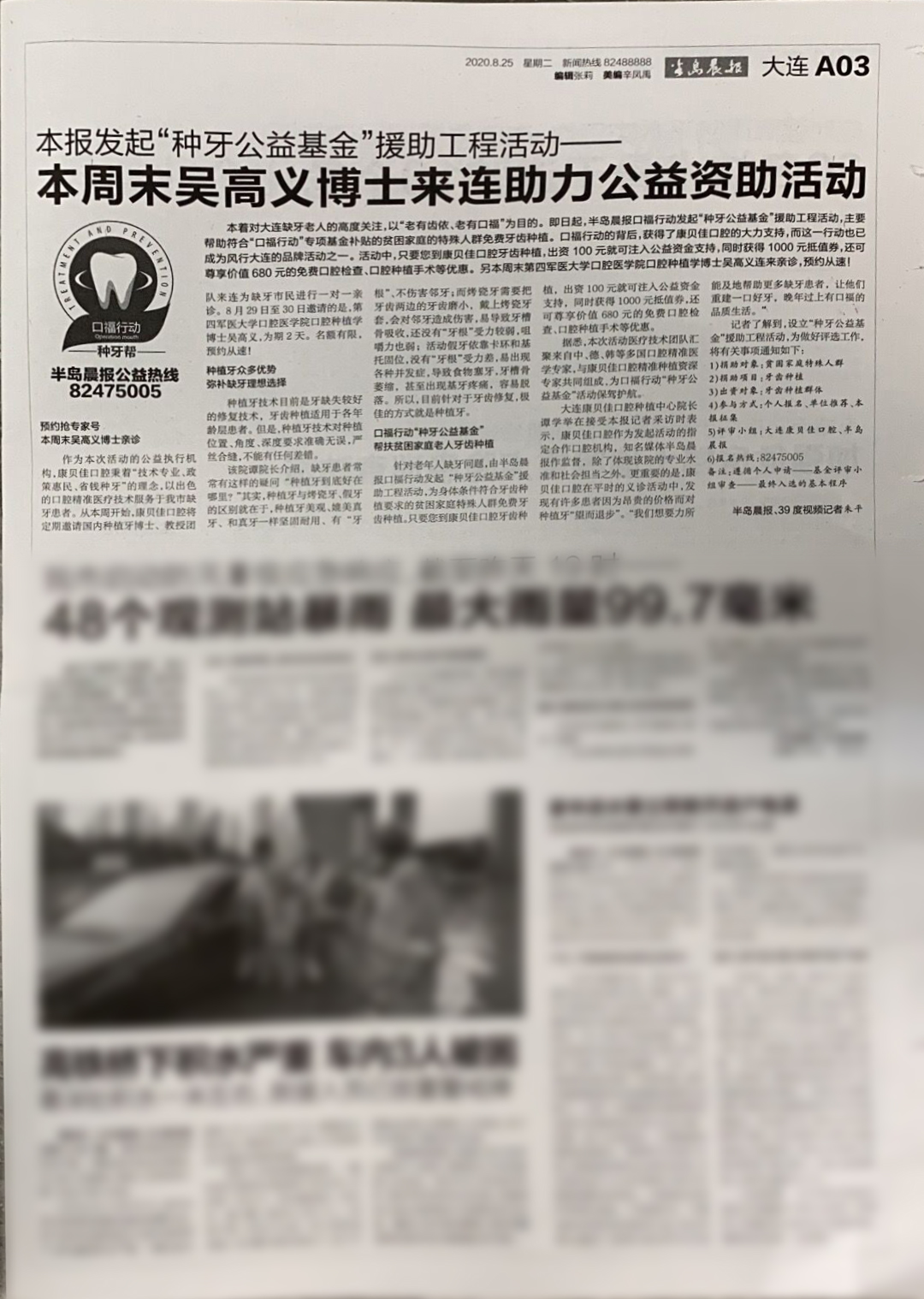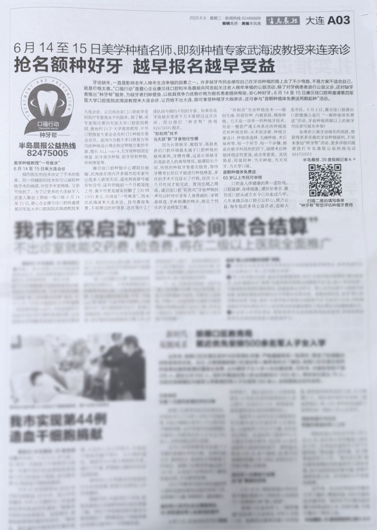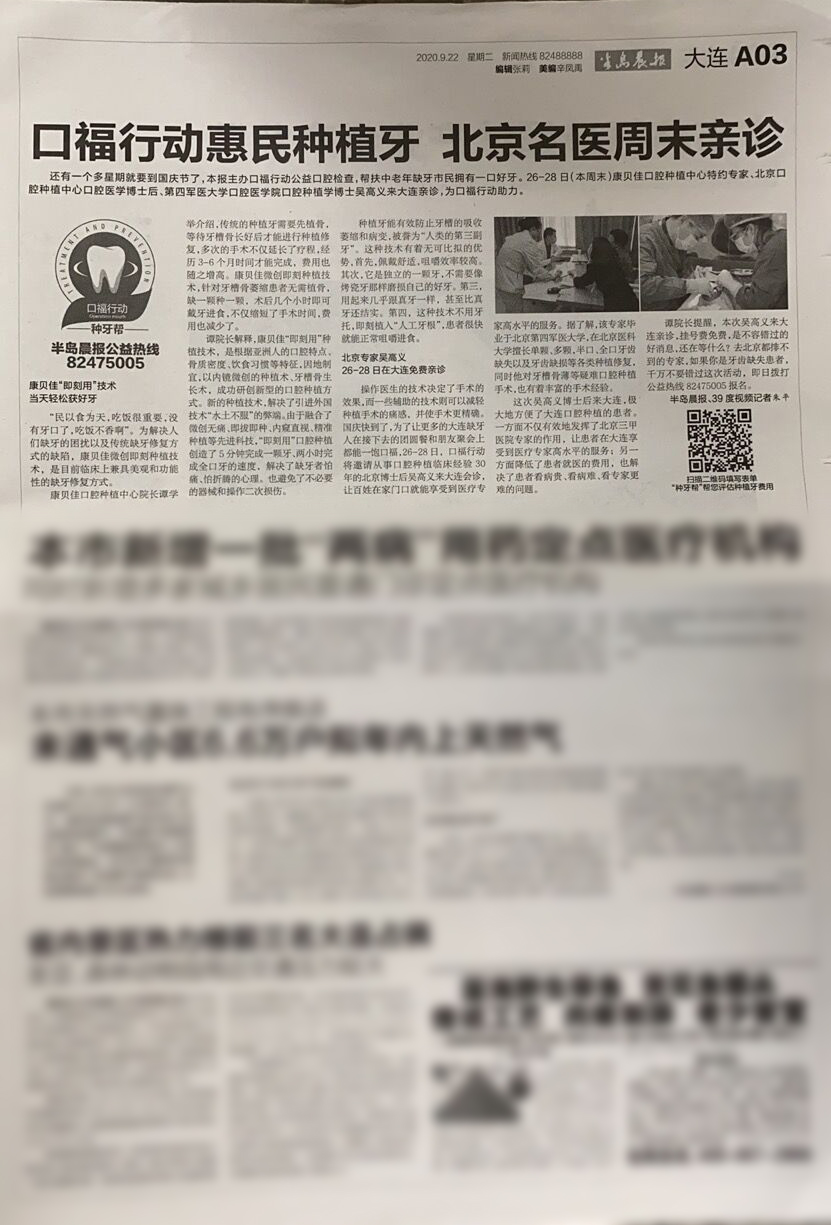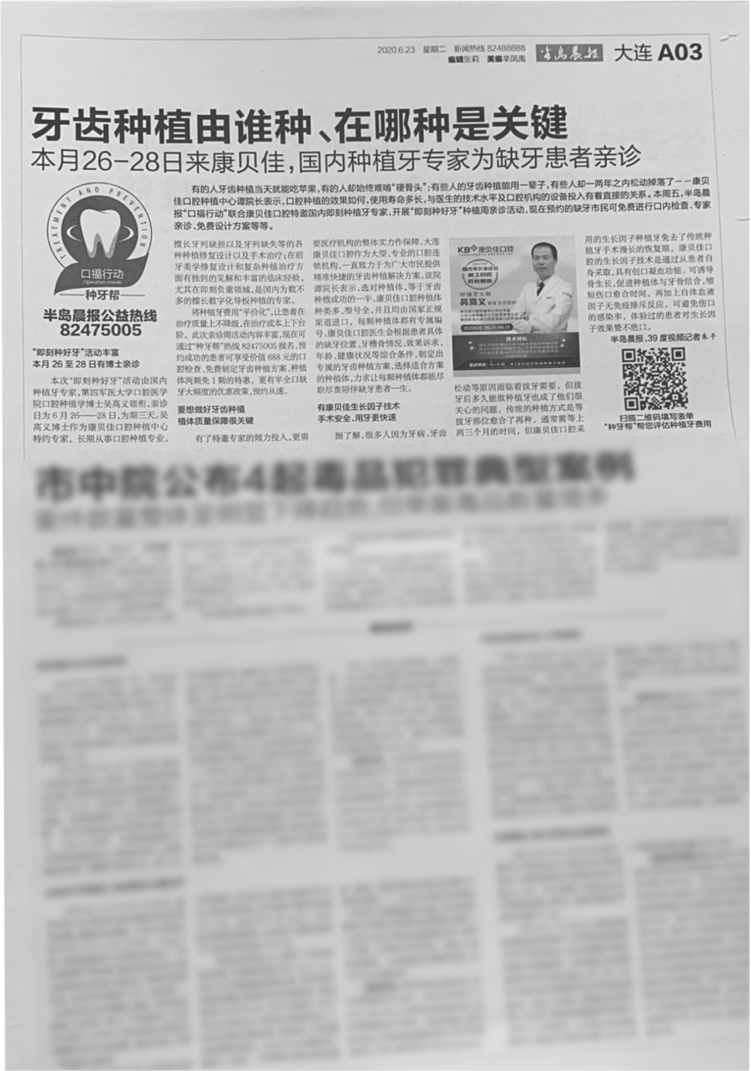 迟指导历来非常重视公益活动,他说:“经过这两次口腔种植经历,我十分注重积累口腔健康知识,圈内人现在都叫我‘迟医生’,我会向他们传播口腔健康的重要性,因为只有把这个理念传递下去,才能引起更多人对口腔的重视;同时,我也会推荐康贝佳口腔给他们。因为大连康贝佳口腔拥有德系的严谨诊疗标准、优良德国医疗器材、德国双认证的博士……我希望我身边的人都能找到专业机构,正确处理口腔问题,远离口腔与身体疾病。”