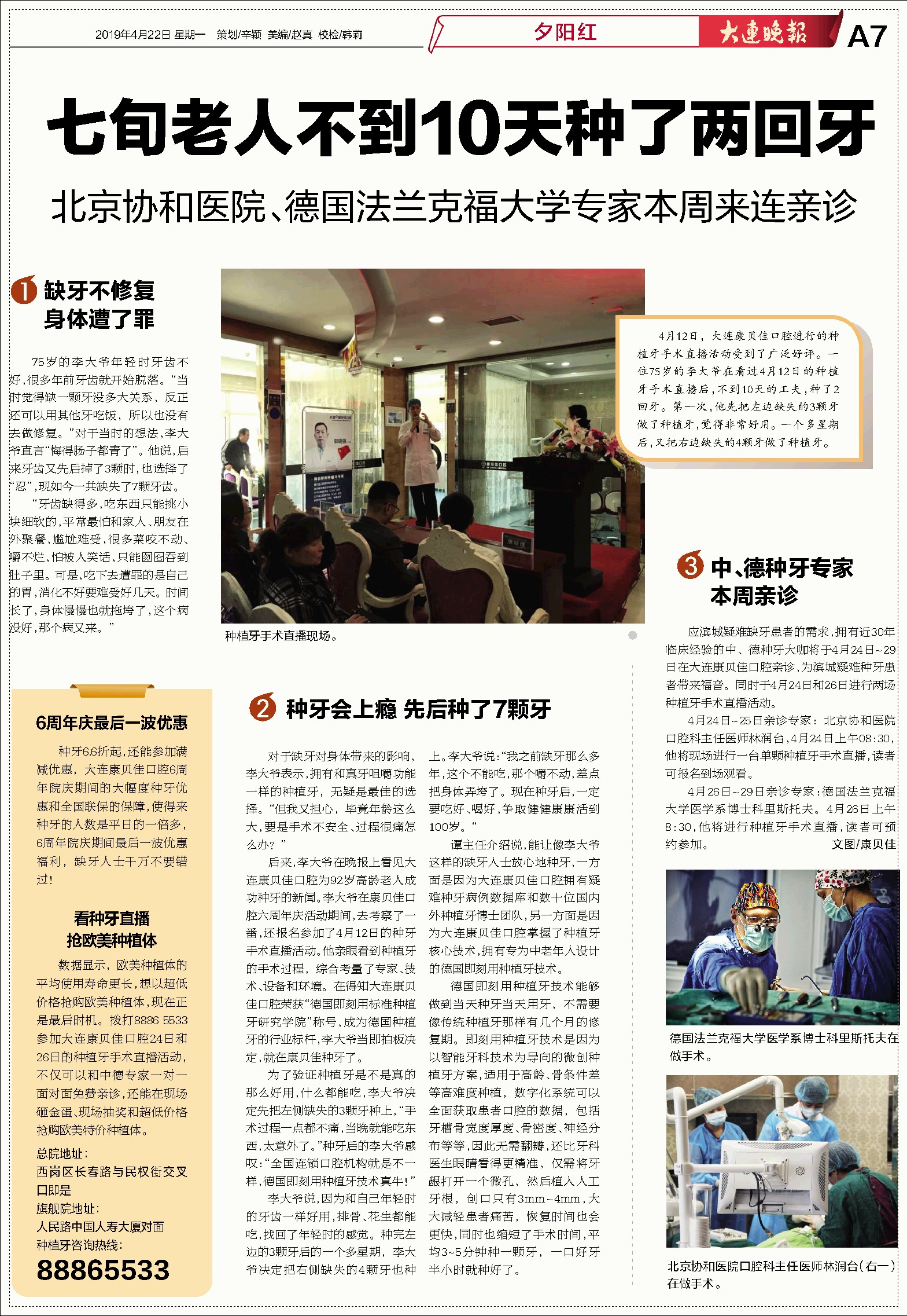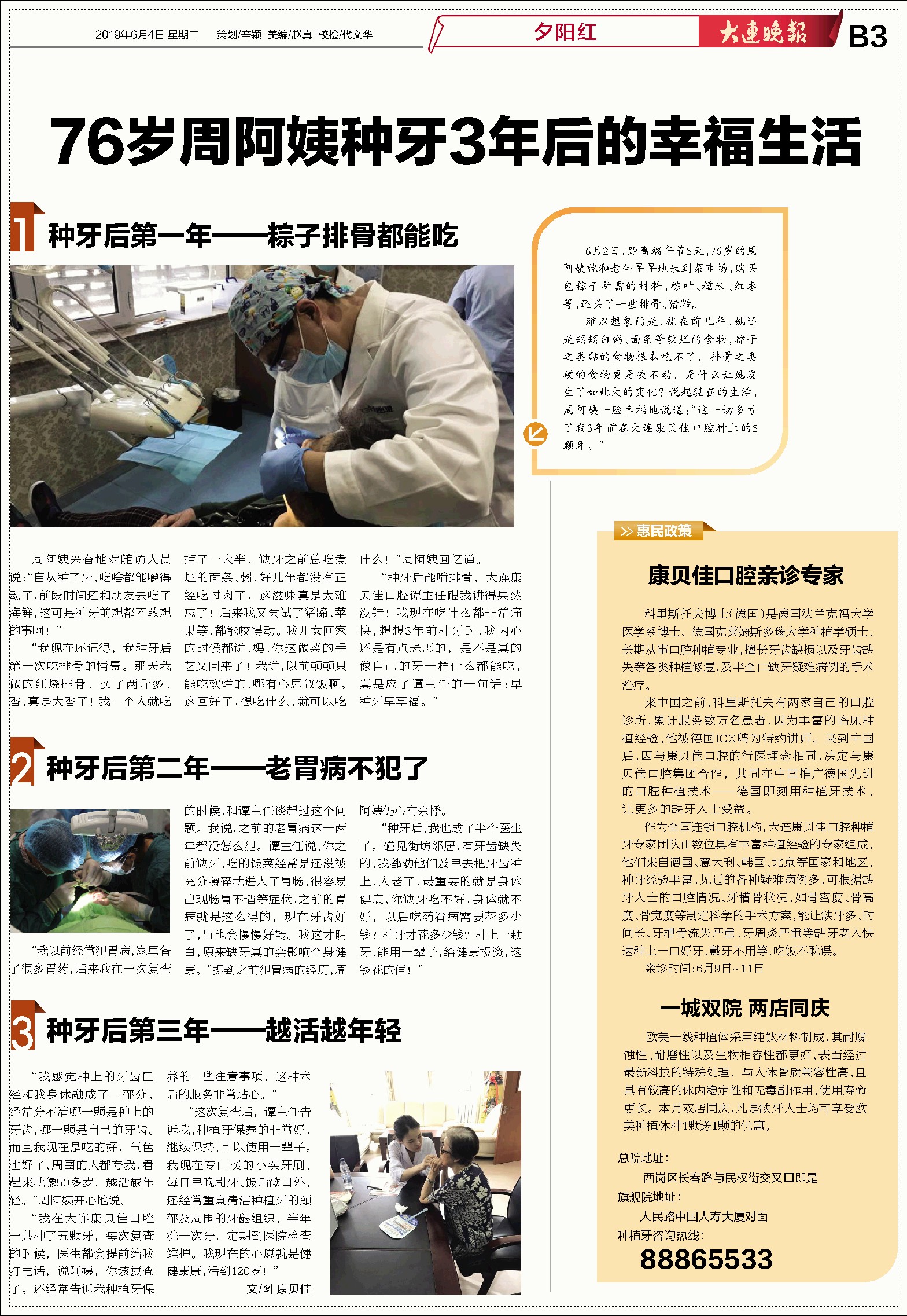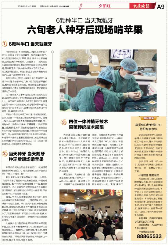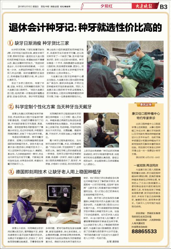 而大连康贝佳口腔从德国引进的“即刻用”种植牙技术专为缺牙中老年设计,而引入大连后的几千起成功种牙案例也证明,德国“即刻用”种植牙更适合缺牙中老年群体。