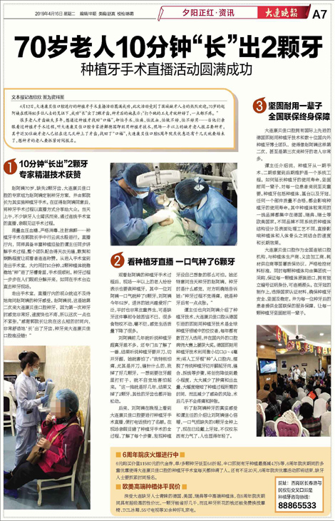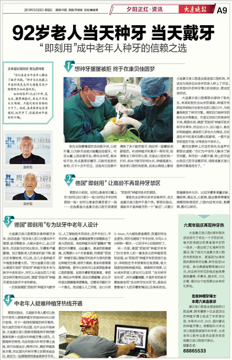 “你们是真正为中老年人解决缺牙问题的。”种牙当天就戴上牙齿的张先生对郭院长如此感叹到。