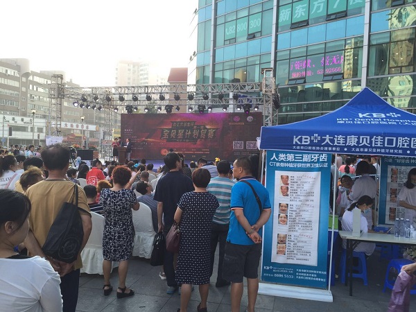 由大连市妇联主办、康贝佳口腔协办的大连市首届“宝贝星计划”复赛第一场,于17:00点在西安路麦凯乐广场正式开始。康贝佳口腔不仅为参加比赛的小朋友提供了价值100元的口腔涂氟,在活动现场还搭建了供大家咨询的口腔义诊大棚。