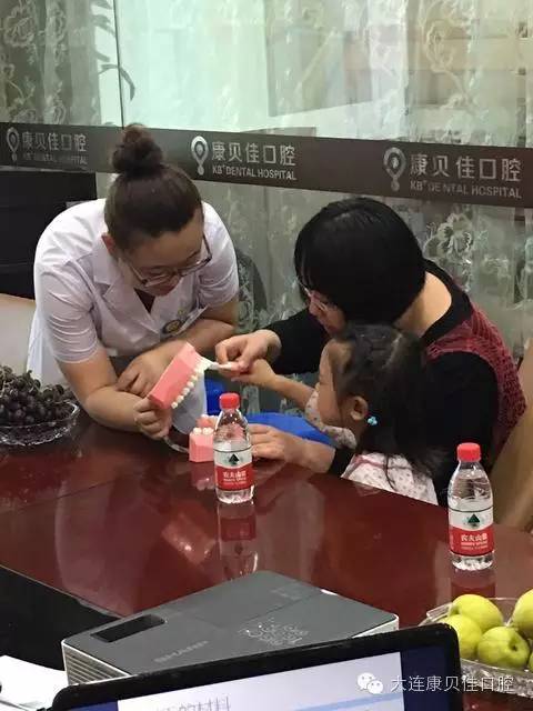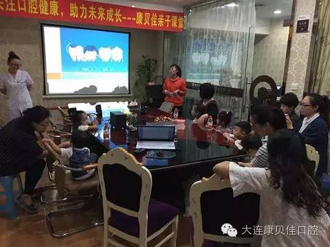 9月24日上午9:30,康贝佳口腔(大连)举办了“小小牙医亲子活动”,欢乐有趣的口腔健康知识和儿童医生职业体验,通过亲身体验,消除小宝宝们对于牙齿检查的恐惧感,自发的保护自己的牙齿。在开场舞结束后,工作人员带领家长和小朋友们来到了三楼,由康贝佳口腔(大连)医生向大家介绍了儿童护齿的要点。