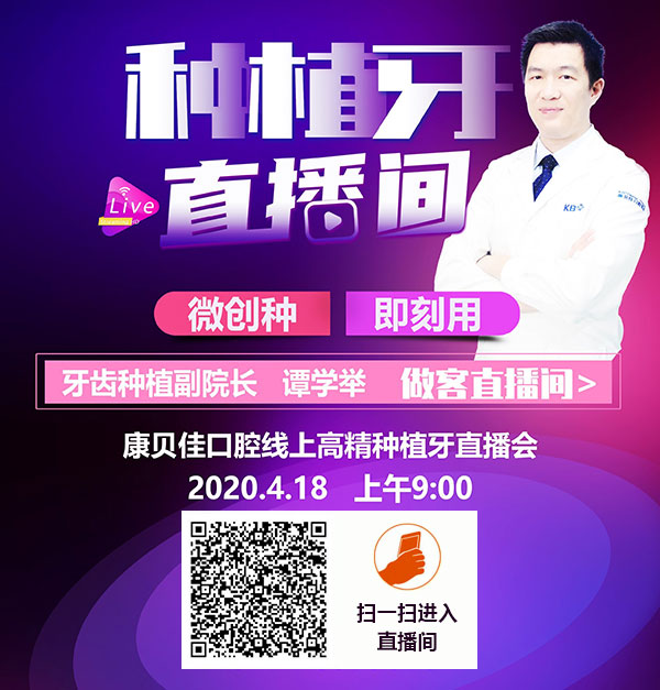 缺牙不补,全口受苦。一些牙科急症需到医院治疗。特殊时期,为了方便缺牙患者问诊咨询,避免人群聚集,降低发生交叉感染风险,康贝佳口腔将在4月18日(本周六)上午9点开通“微创种、即刻用——院长种植牙直播间”线上诊疗平台,让市民朋友们足不出户,只需一部手机就能通过视频、图文等形式与医生进行实时沟通,免费与口腔种植大咖一对一线上咨询。