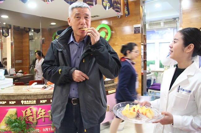 3月17日上午,共有60多位顾客在康贝佳口腔(大连)现场见证了吴博士为一位六旬老人种上了半口牙齿,原本预计3个小时完成的种牙手术,在吴博士精湛的技术下,只用了1个小时就成功完成了手术,现场观众都为之折服。吴博士18日、19日,也就是这周末还有两天的亲诊时间,每天20个亲诊名额,点击即可报名! >>我要报名