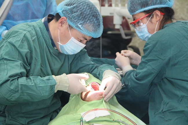 别看吴博士只有了1个多小时就种完了半口牙,看起来很轻松,实际上这是一个非常复杂的疑难种植牙手术,因为申先生的口腔条件非常不好,牙槽骨薄、口腔炎症严重、口腔粘膜也不好,能做此类种牙手术的医生屈指可数。