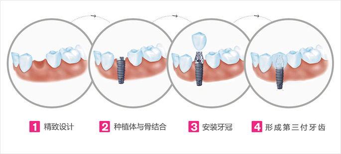 种植牙是通过医学方式,将与人体骨质兼容性高的纯钛金属经过精密的设计,制造成类似牙根的圆柱体或其他形状,以外科小手术的方式植入缺牙区的牙槽骨内,经过 1~3 个月后,当人工牙根与牙槽骨密合后,再在人工牙根上制作牙冠。更大程度还原缺牙的功能,是缺牙更好的修复体。
