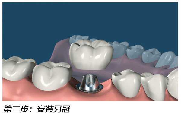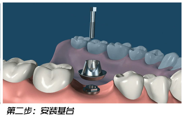 与种植体相匹配的基台插入种植体内,通过中央螺丝来连接固位,如同让“大树长出树干”。最后再在基台上面安装牙冠,让“树干上长出树枝和树叶”,一颗犹如真牙一般的种植牙就完成了。